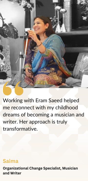 Through a blend of spiritual guidance and personal growth tools, Eram equips women and couples with the confidence and resilience to navigate life's challenges with grace and conviction. Her coaching programs offer a holistic approach to self-discovery, combining Islamic wisdom with practical techniques to nurture the mind, body, and spirit.